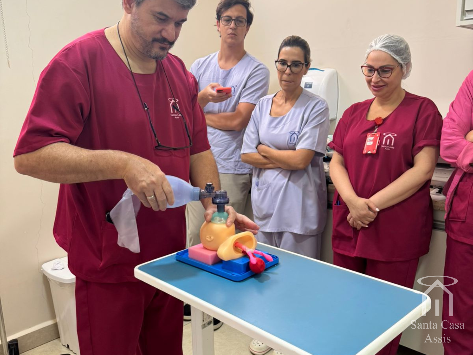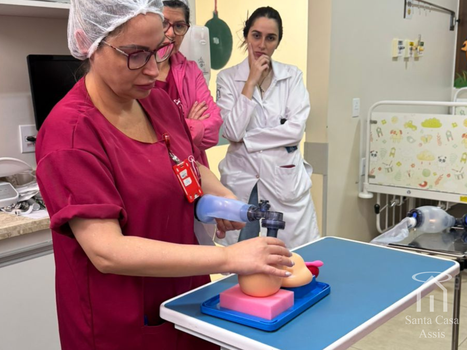 O treinamento foi conduzido pela enfermeira supervisora do P.A, Fernanda Correa Souza, e pela pediatra Dra. Cecília Uchoa, coordenadora da UTI Neonatal e Pediátrica. Durante a atividade, foram repassadas técnicas essenciais para atendimentos de urgência, revisados protocolos institucionais e debatidas condutas fundamentais em cenários de alta complexidade.